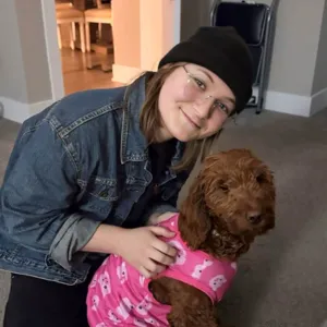 Sarah is the smiling face at our front desk, balancing her love for animals with her studies to become a teacher. At home, her dog Kingston keeps her busy as “chief troublemaker.” She loves greeting every furry friend (and their humans) who walk through our doors.
