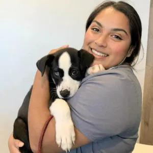 Kayden keeps the clinic running smoothly—handling the front desk with a smile and helping doctors and techs in the back whenever needed. At home, he’s surrounded by furry chaos: two cats, a foster kitten named Lark, and Rosie, the family dog who proudly runs the household. Always upbeat, coffee in hand, and ready to make every visit a little brighter!